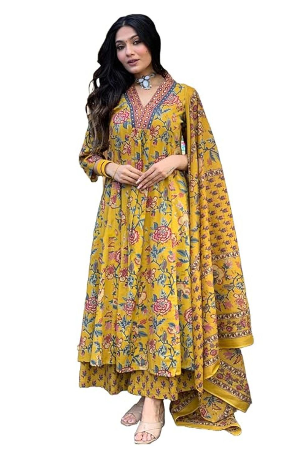 This set includes: 1 Kurta and 1 Pant with Dupatta || Work :- Printed || Neck Style:- V-Neck
